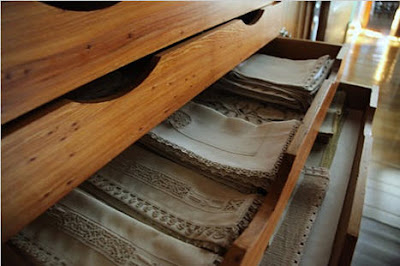 Tablecloths at Skylands are rolled and hung on the wall so they remain wrinkle free and ready to go. I definitely want this too!